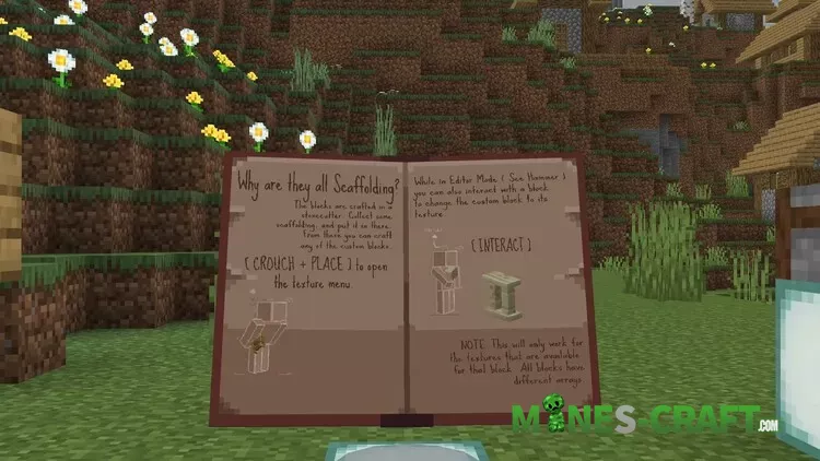 Install the pack, open your world, place the guide book, collect scaffolding, and feed it to the stonecutter. Use the picker to select shapes, then refine with Painter, Variant, Rotate, and the new distance tools. Build faster, fix mistakes quicker, and keep your style consistent across huge projects.