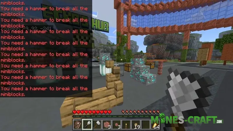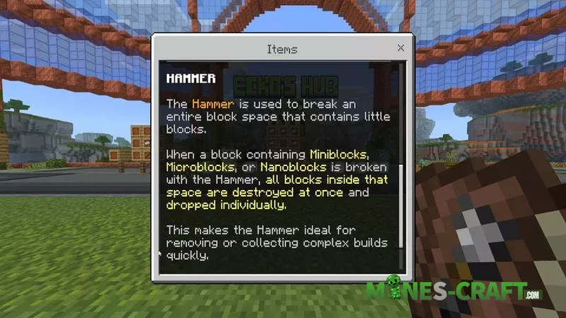 In addition to a chisel, you’ll need a hammer. You use it when you want to quickly remove an entire complex structure. The hammer destroys all mini-blocks within a single standard cube and returns them to your inventory.