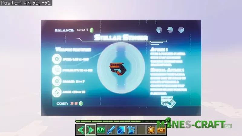 Improvements include a kinetic accelerator (attack speed), carbon plates (durability), a light coil (effects), a repair kit, and an energy core. Improvements are installed through a special station. There are two new ores: plasma and nano ore. They are generated in the normal and deep layers of the MC:BE world. They can be found quite often. The new resources are of interest to the new mob merchant.