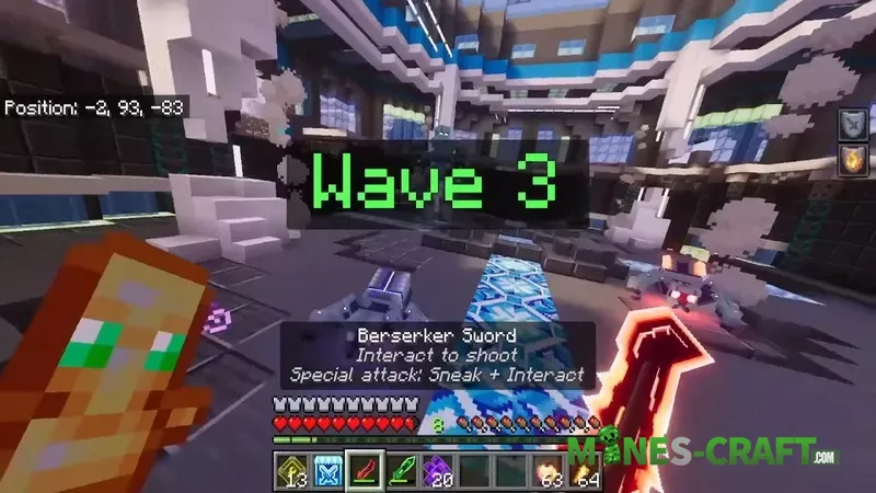 Each arena allows you to go through waves of mobs and get emeralds. Some weapons destroy blocks in arenas, which is one of the downsides. Another drawback is that it is sometimes difficult to tell whether you have hit a mob or not, as some models have sensitive hitboxes.