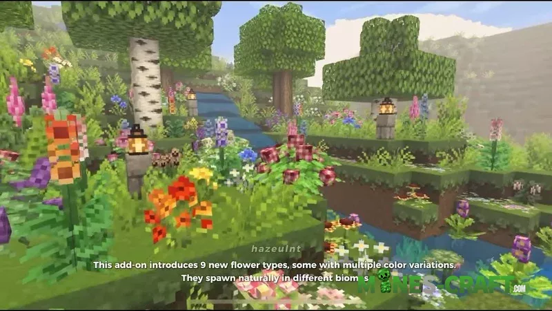 The add-on adds 9 basic types of flora, but the number of variations is astonishing. You can find rare lupines (from sky blue to “Manhattan lights”) or collect a collection of hydrangeas. Water hyacinths and new water lilies now grow in ponds and backwaters.