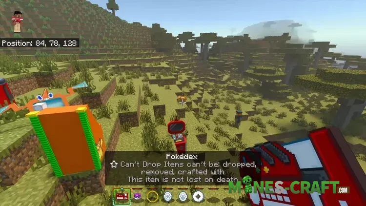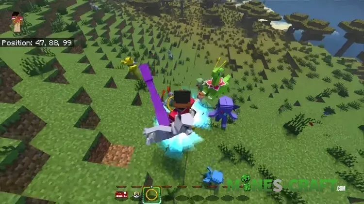 Pokemons spawn naturally depending on the biome. Water types like Magikarp or Squirtle appear in rivers and oceans while ground or rock types like Sandshrew or Geodude hang around deserts and mountains. Some are easy to spot but Legendaries are extremely rare-you’ll need patience if you want to track them down.