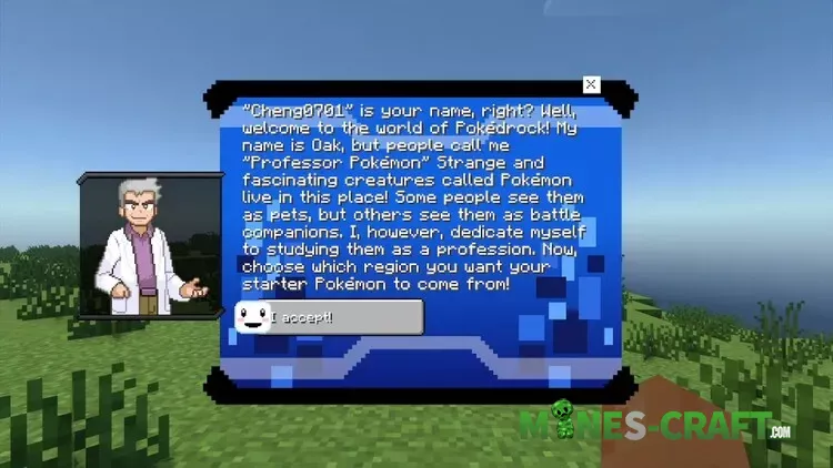 The first time you load up a world, Professor Oak shows up to welcome you. He even gives you the choice of a starter: Bulbasaur, Charmander, Squirtle, Pikachu or Eevee. Once you’ve picked your partner the adventure begins. From there it’s all about exploring the world, finding wild Pokemon and building your team.
