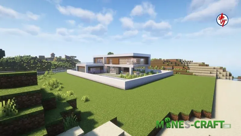 This project is a two-story mansion for Minecraft: Bedrock 26.20 that blends seamlessly into the coastal landscape and is fully move-in ready, so you can settle in and start living there without lifting a finger.