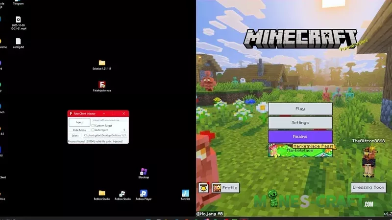 To run Soulstice, you need a special injector and a client DLL file. First, launch Minecraft Bedrock, then open the injector, select the DLL file, and after pressing “Inject” the modifications become active