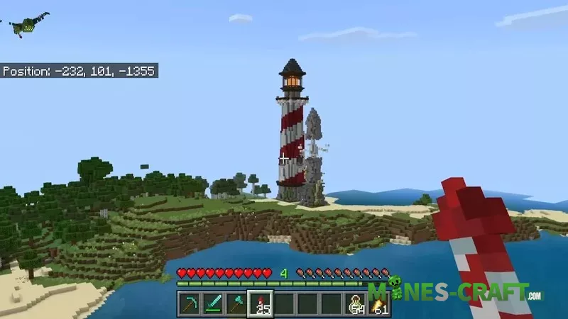 A detailed study of the Structure Expansion Add-On reveals some nuances. The placement logic is sometimes flawed: a lighthouse may stand in the middle of a forest instead of by the sea. In addition, structures generate very often, which can sometimes overload the map.
