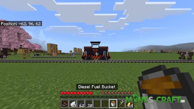TRAINS Addon is a railway simulator for Bedrock Edition 1.21. This update adds a bunch of locomotives and carriages: Midcab Diesel, Front Cab Diesel, Winged Steam Engine, and also new tanks for fuel, water, lava and even XP. Locos can be painted in different colors, which changes not only the shade but also the design. Cars got couplings and run on redstone, coal or diesel. Plus, new rails and crossover tracks expand the possibilities for building your railways.