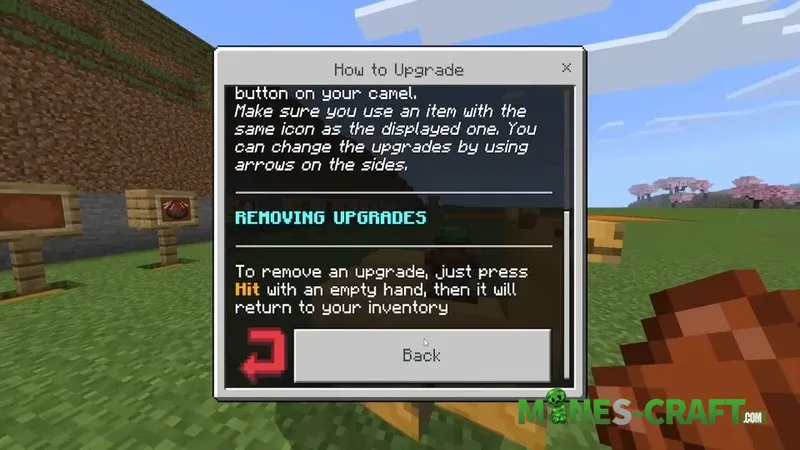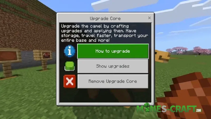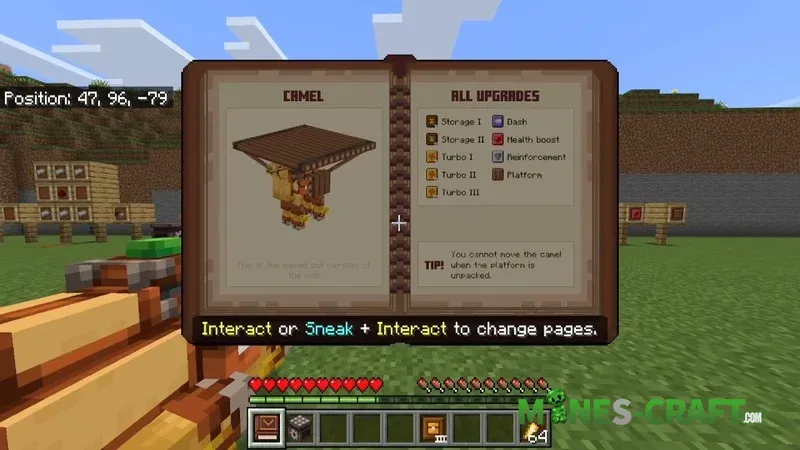 - Camel: It can make powerful dashes. If you install the speed upgrade, blue boots will appear on its legs, reminiscent of artifacts from Minecraft Dungeons.