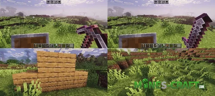 The Voxelized Texture Pack transforms cubic textures into crisp, multi-layered, and voluminous surfaces that may not appeal to everyone. It combines the aesthetics of classic pixels with neat geometry and a sense of depth, as if each texture consists of small voxels arranged in a perfect grid.