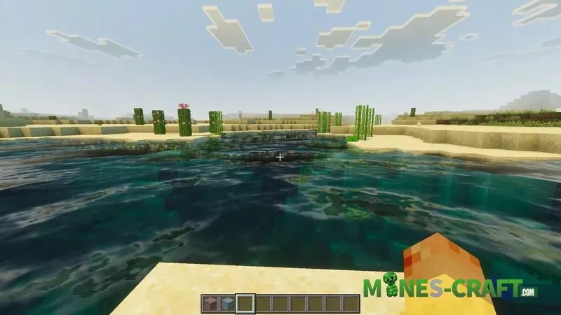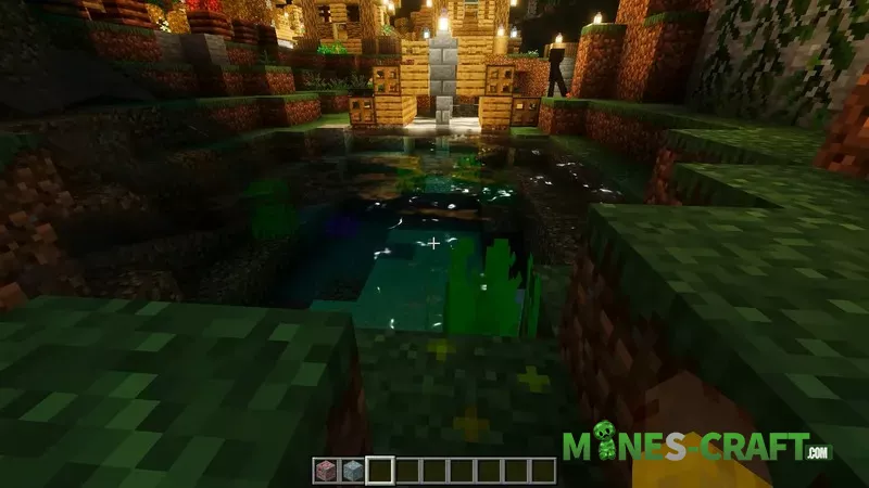 It is worth noting the soft reflections that create a realistic shine on objects such as iron golems, slimes, magma, and mini-cards. Glow effects are now present on some creatures, such as Drowns, Ender Crystals, Allays, and others.