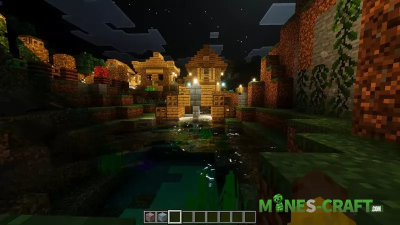 With Warm Bedrock Shader, daylight is saturated with golden and orange hues, nighttime looks brighter and more realistic, fog and haze in biomes have become less aggressive, and jungles look more transparent. Overall, lighting is the main reason why you should install this shader.