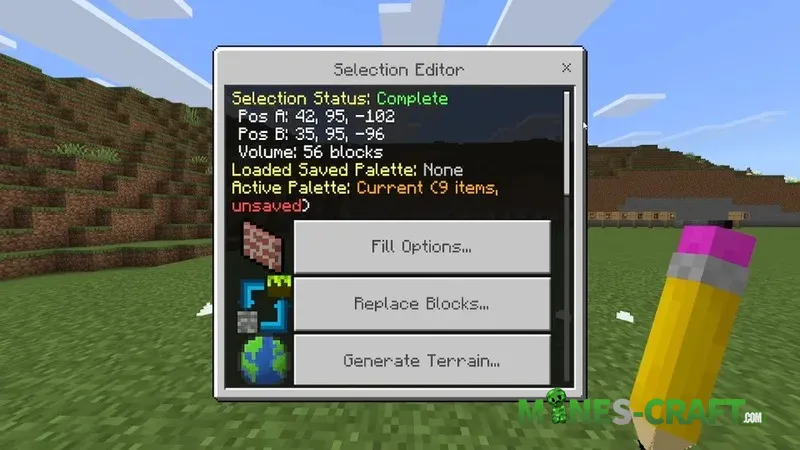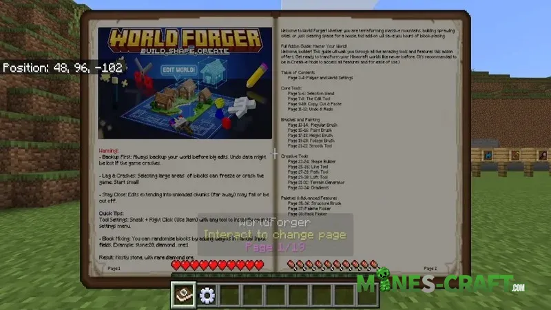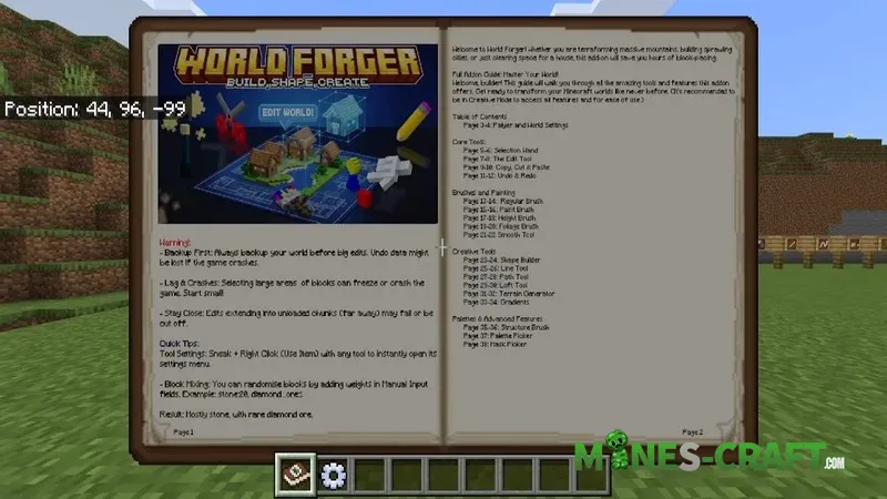 World Forger is a World Edit add-on for Minecraft: Bedrock 26.13 that offers advanced world editing tools and advanced building capabilities. The add-on is available for 990 coins, so if the free version of World Edit isnt enough for you and you have a few Minecraft coins to spare, go for World Forger.