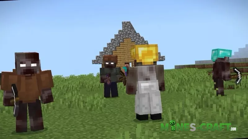 Worlds End transforms vanilla Minecraft: Bedrock into a harsh survival where zombies are the true masters of the world. Now, different types of infected patrol the village, wear armor, and attack in groups. All the player can do is seek shelter, obtain weapons (for example, from this Zombie Virus Addon) and gradually build up their strength to survive the first few days.